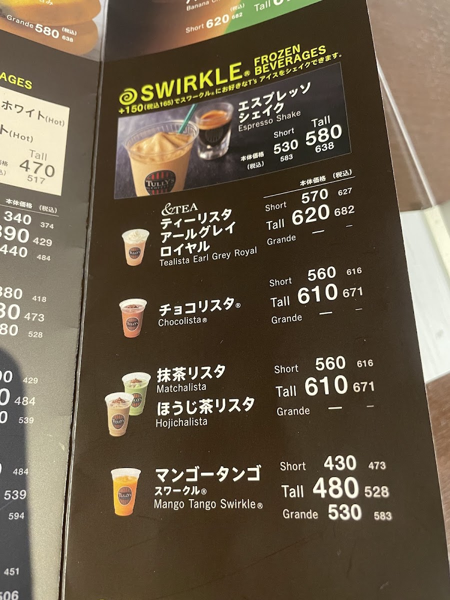 Tully's Coffee at Hankyu Sanban Gai South in Osaka offers a delightful menu that caters to a variety of tastes, whether you’re looking for a classic coffee, a refreshing iced drink, or something a bit more unique.